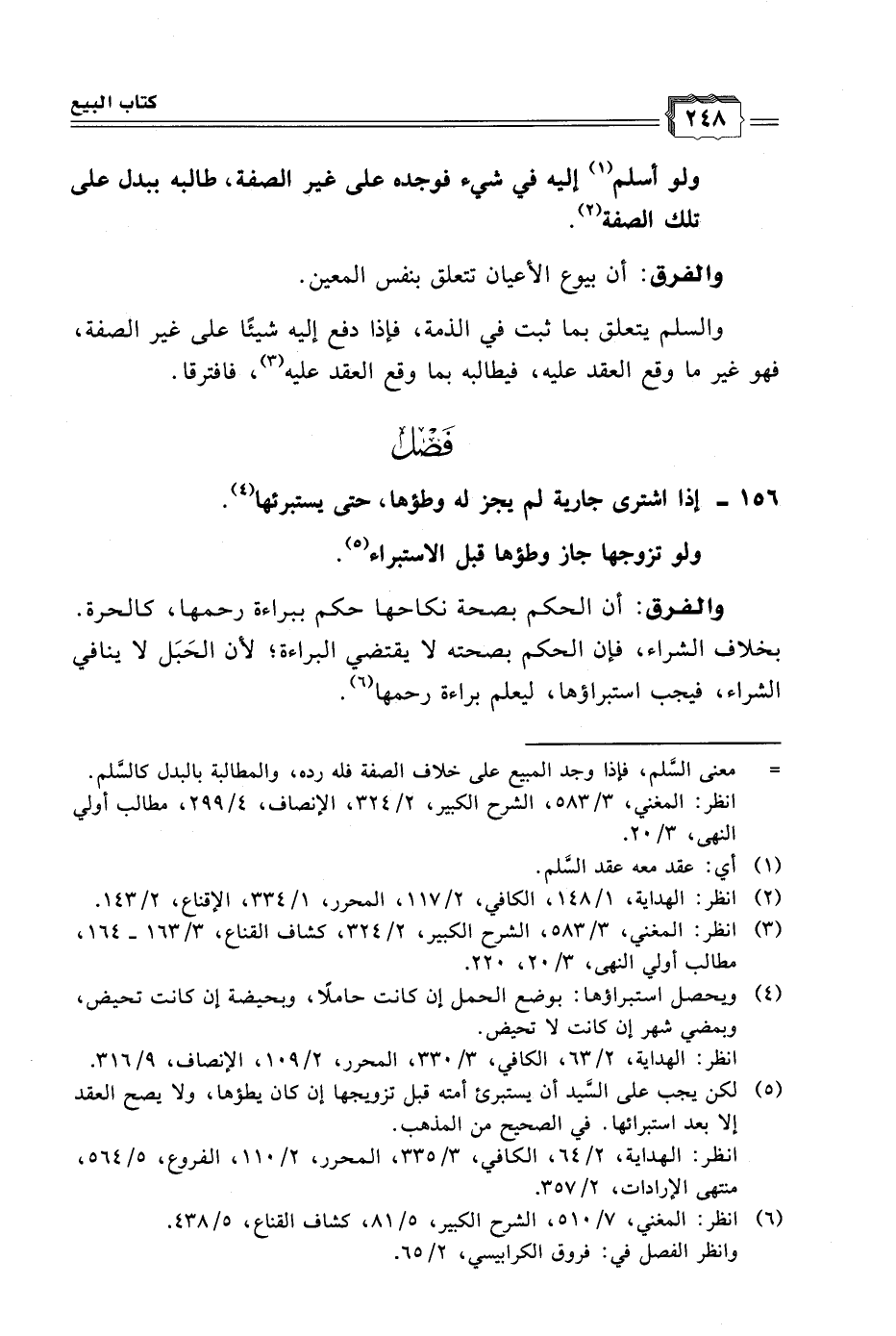 (٦) انظر: المغني، ٧/ ٥١٠، الشرح الكبير، ٥/ ٨١، كشاف القناع، ٥/ ٤٣٨.