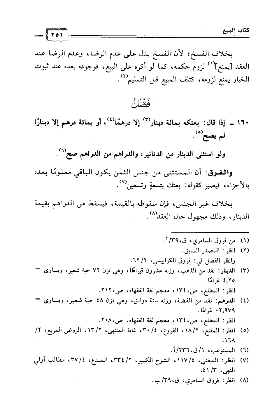 ١٦٠ - إذا قال: بعتكه بمائة دينار (٣) إلا درهمًا (٤)، أو بمائة درهم إلا دينارًا لم يصح (٥).
