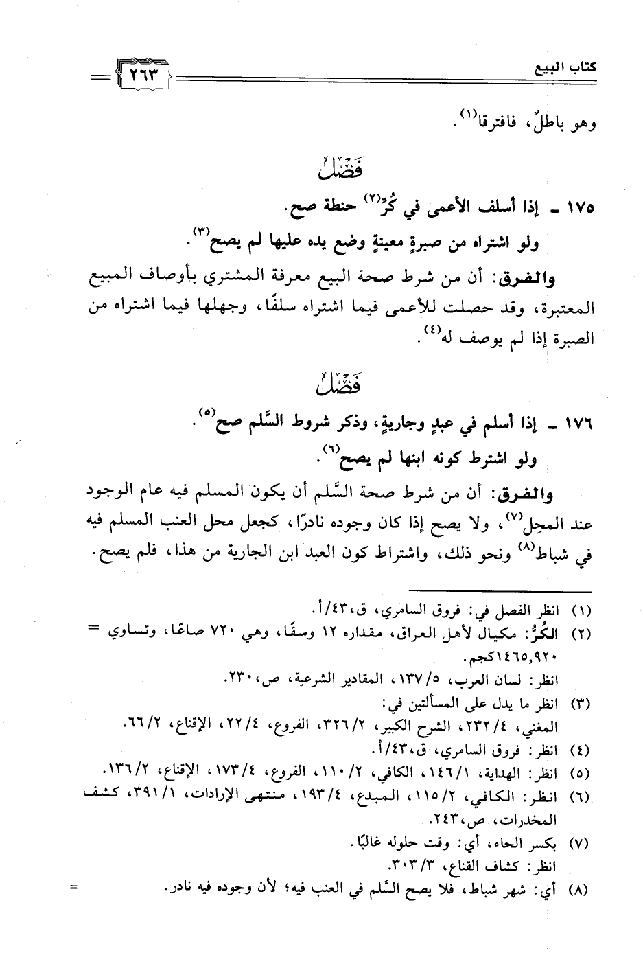 (٢) الكُرُّ: مكيال لأهل العراق، مقداره ١٢ وسقًا، وهي ٧٢٠ صاعًا، وتساوي = ١٤٦٥، ٩٢٠ كجم.
