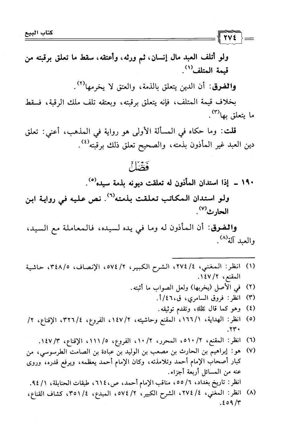 (٨) انظر: المغني، ٤/ ٢٧٤، الشرح الكبير، ٢/ ٥٧٤، المبدع، ٤/ ٣٥١، كشاف القناع، ٣/ ٤٥٩.