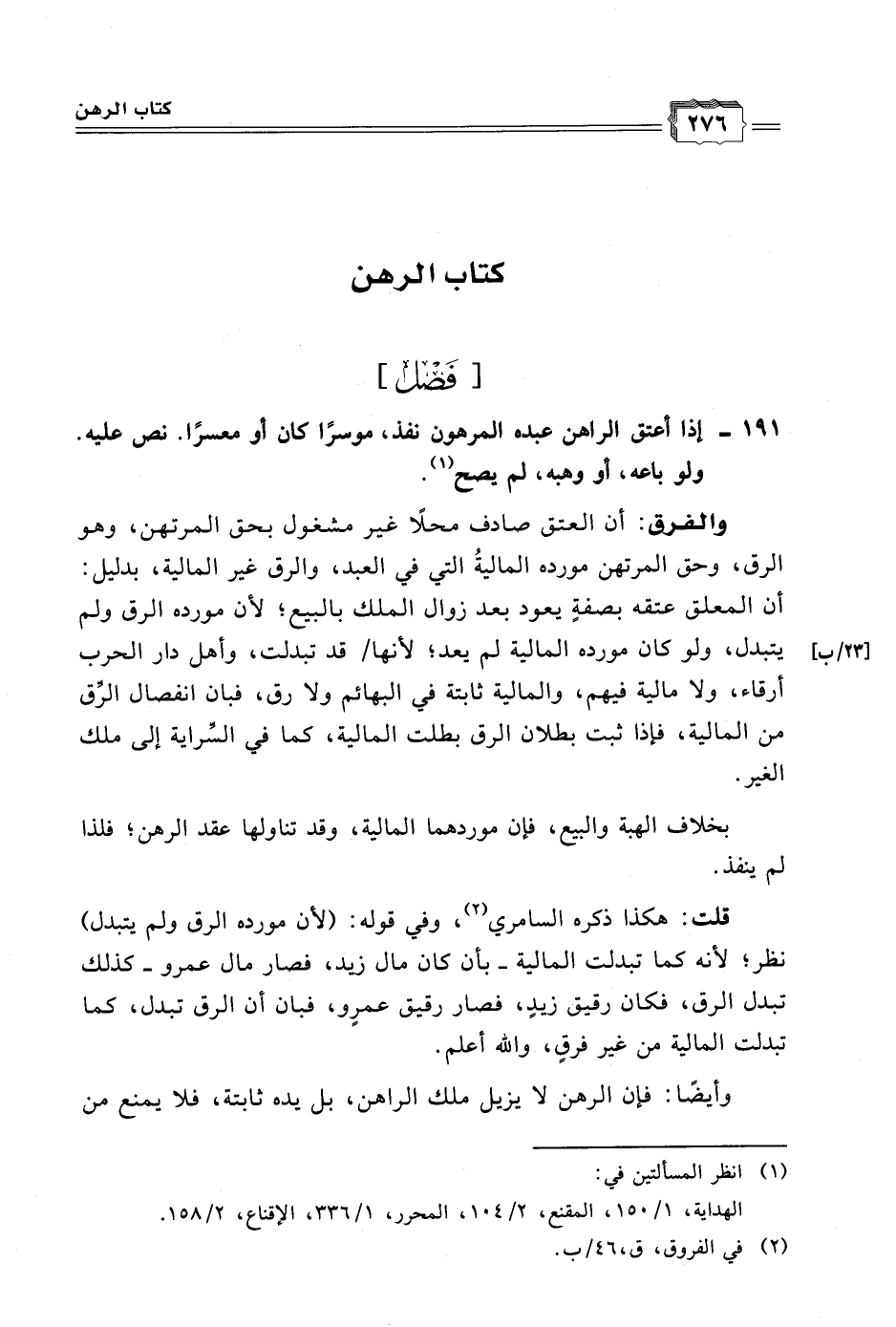 (٢) في الفروق، ق، ٤٦/ ب.