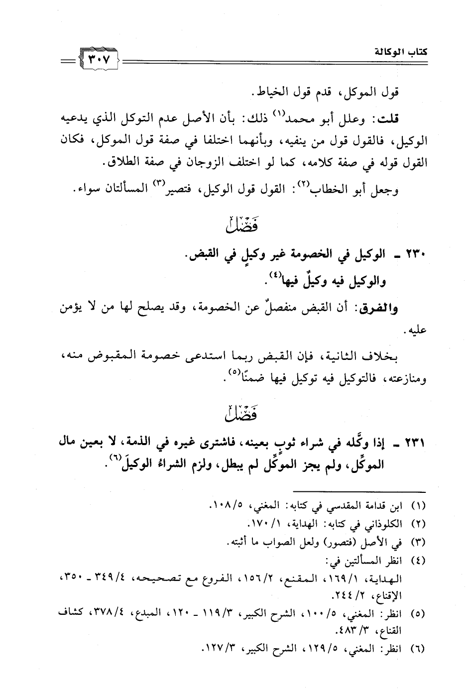 (٦) انظر: المغني، ٥/ ١٢٩، الشرح الكبير، ٣/ ١٢٧.