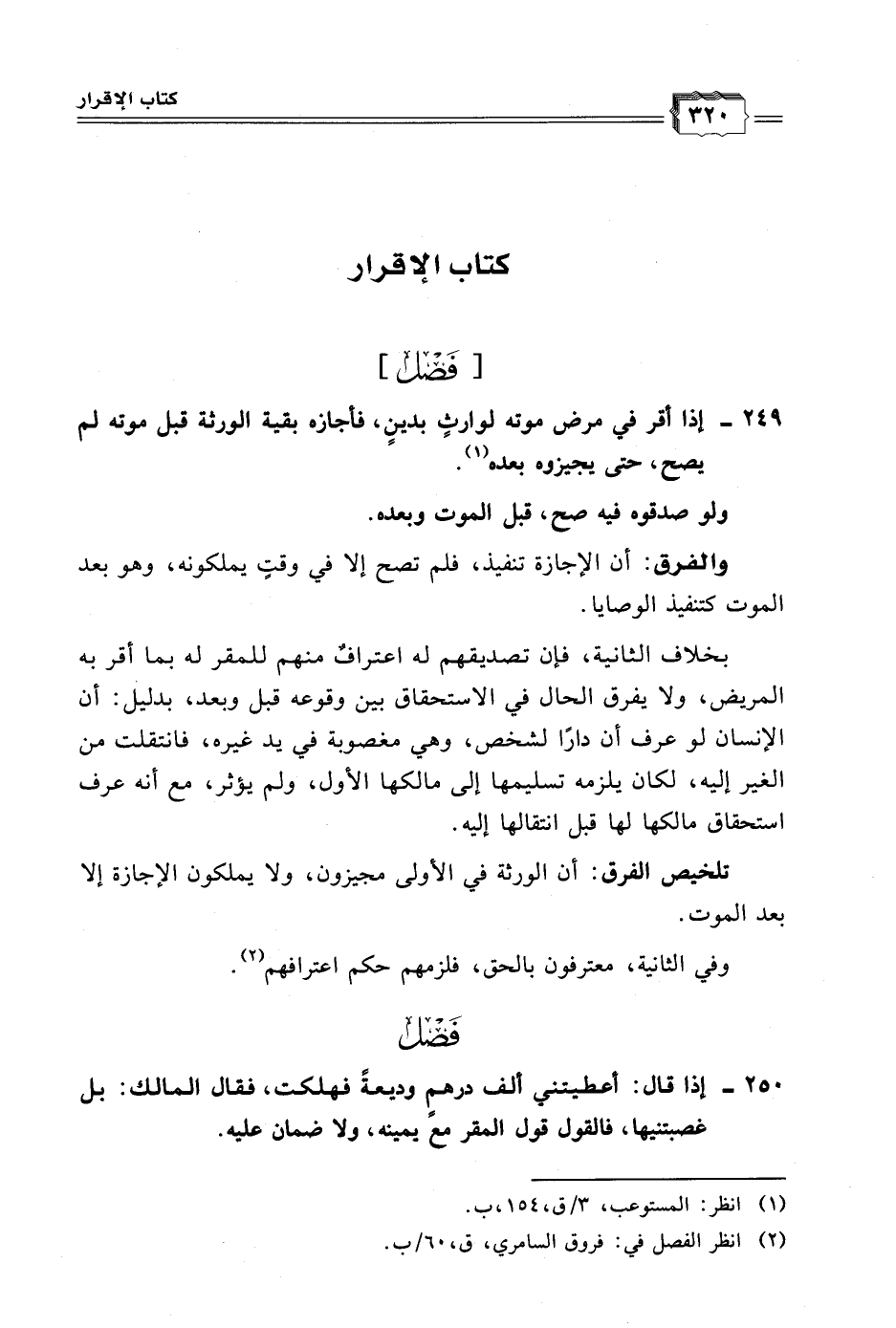 (٢) انظر الفصل في: فروق السامري، ق، ٦٠/ ب.