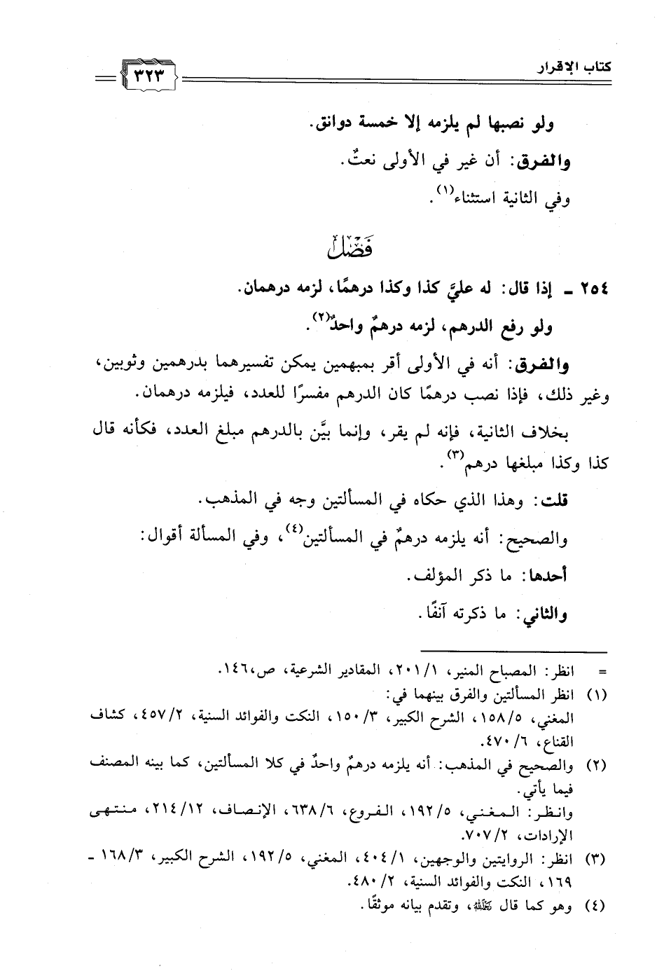 والصحيح: أنه يلزمه درهمٌ في المسألتين (٤)، وفي المسألة أقوال: أحدها: ما ذكر المؤلف.