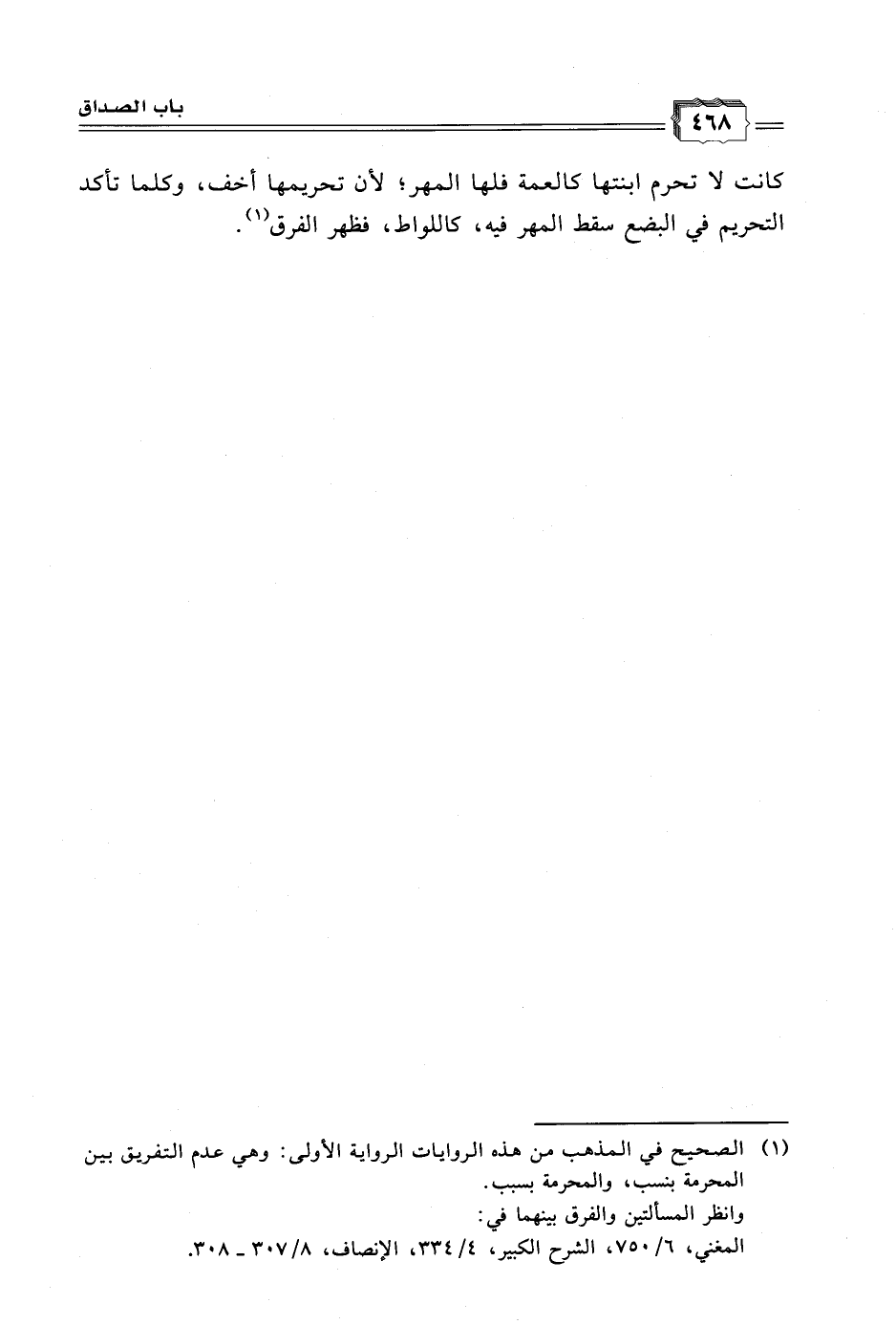 وانظر المسألتين والفرق بينهما في: المغني، ٦/ ٧٥٠، الشرح الكبير، ٤/ ٣٣٤، الإنصاف، ٨/ ٣٠٧ - ٣٠٨.