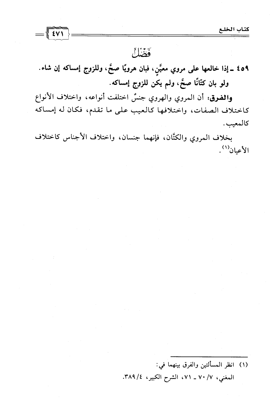 (١) انظر المسألتين والفرق بينهما في: المغني، ٧/ ٧٠ - ٧١، الشرح الكبير، ٤/ ٣٨٩.