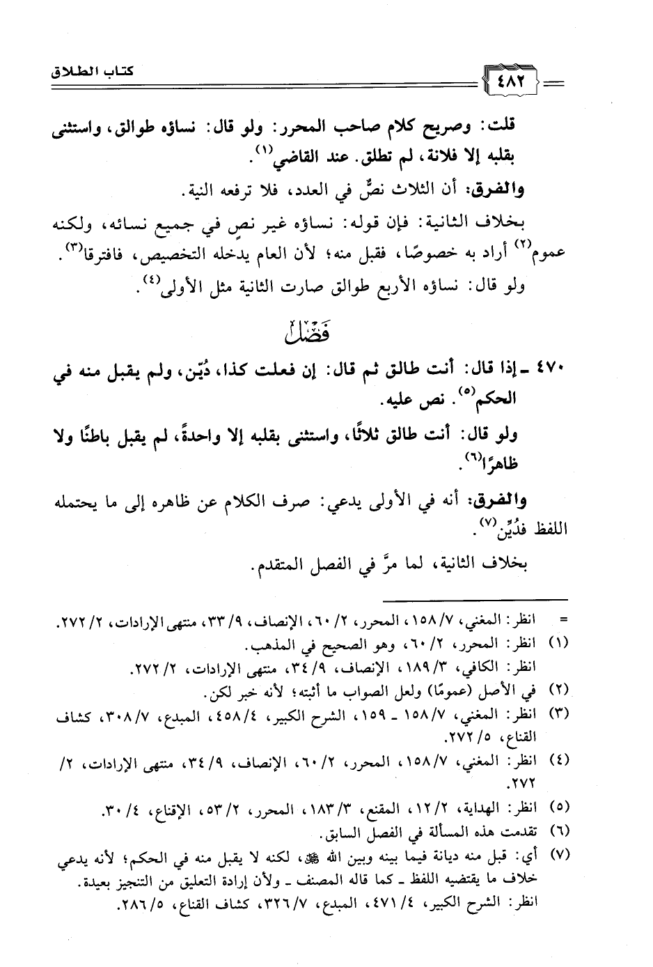(٤) انظر: المغني، ٧/ ١٥٨، المحرر، ٢/ ٦٠، الإنصاف، ٩/ ٣٤، منتهى الإرادات، ٢/ ٢٧٢.