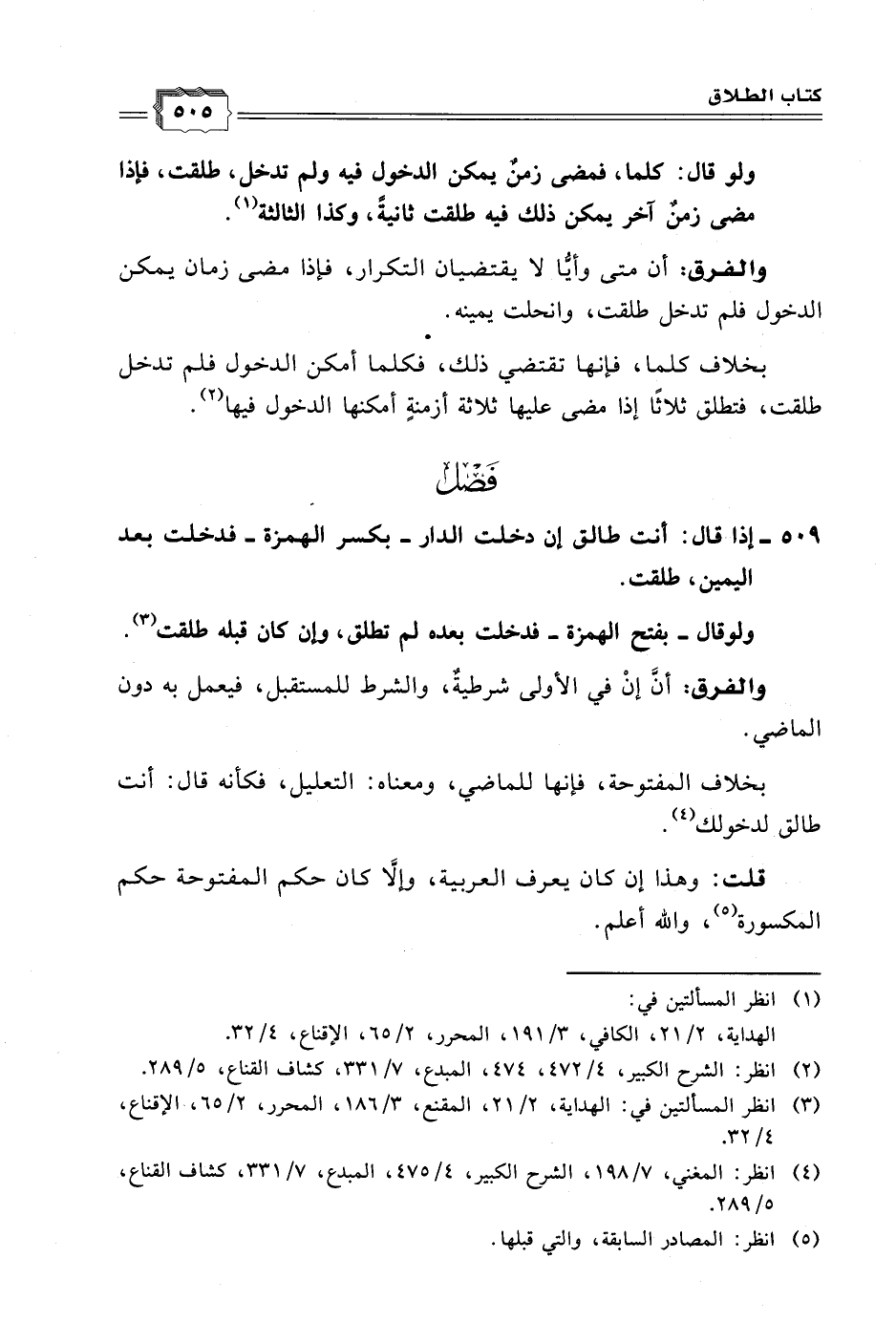 ٥٠٩ - إذا قال: أنت طالق إن دخلت الدار - بكسر الهمزة - فدخلت بعد اليمين، طلقت.