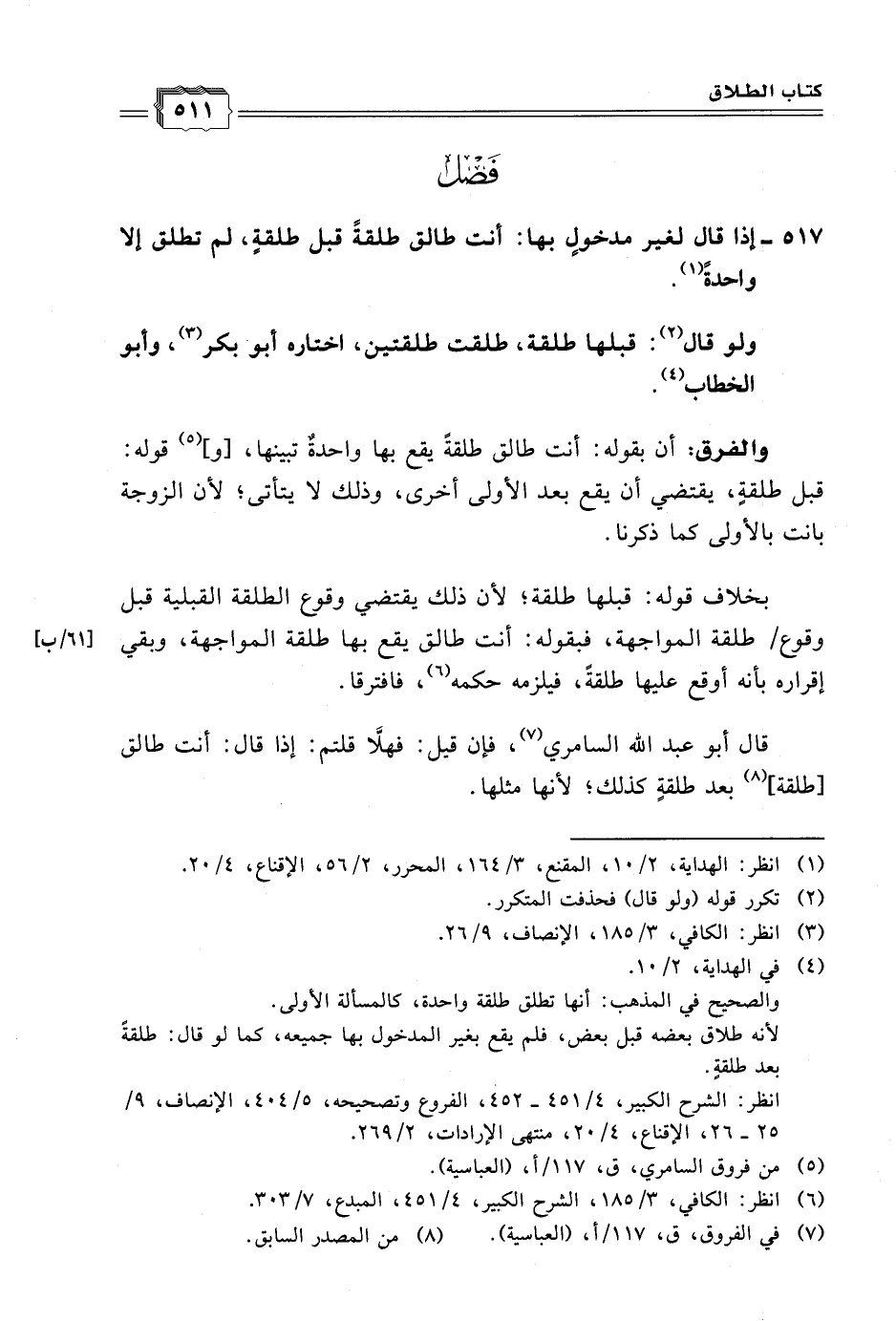 (٣) انظر: الكافي، ٣/ ١٨٥، الإنصاف، ٩/ ٢٦.