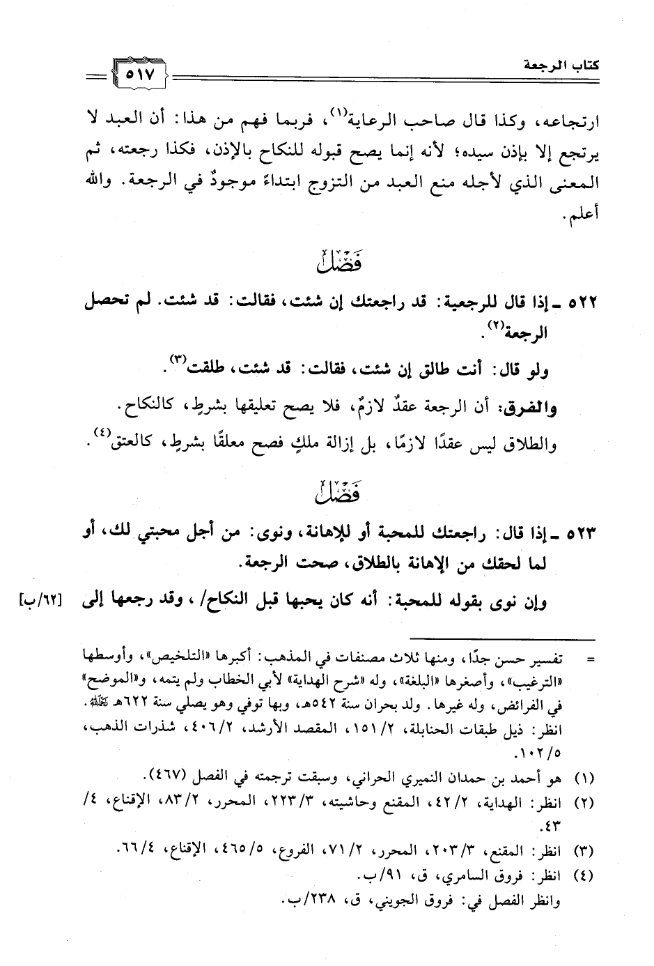 (٣) انظر: المقنع، ٣/ ٢٠٣، المحرر، ٢/ ٧١، الفروع، ٥/ ٤٦٥، الإقناع، ٤/ ٦٦.