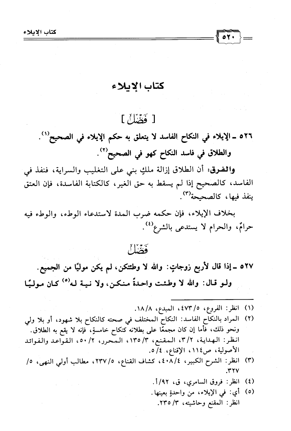 ٥٢٦ - الايلاء في النكاح الفاسد لا يتعلق به حكم الإيلاء في الصحيح (١).