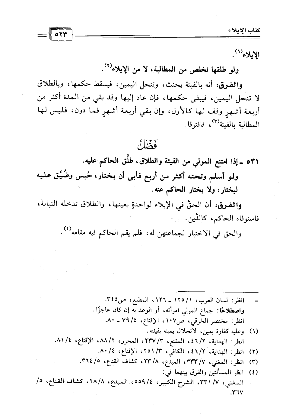 ٥٣١ - إذا امتنع المولي من الفيئة والطلاق، طلَّق الحاكم عليه.