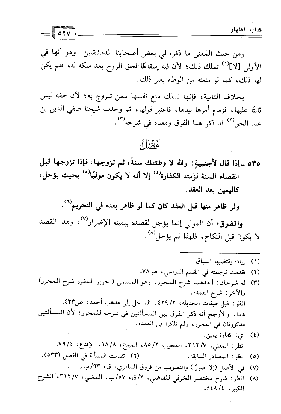 (٨) انظر: شرح مختصر الخرقي للقاضي، ٢/ ق، ٥٧/ ب، المغني، ٧/ ٣١٢، الشرح الكبير، ٤/ ٥٤٨.