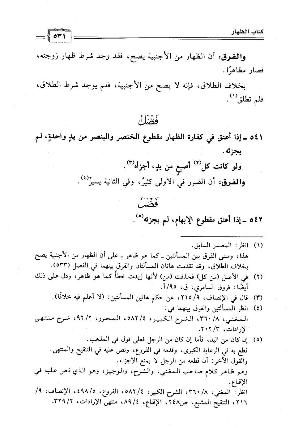 ٥٤١ - إذا أعتق في كفارة الظهار مقطوع الخنصر والبنصر من يدٍ واحدةٍ، لم يجزئه.