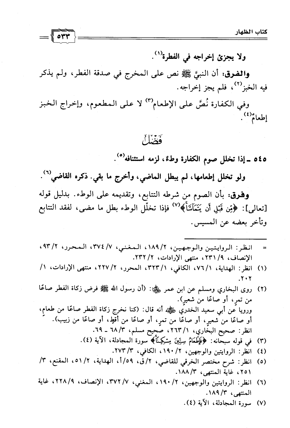(١) انظر: الهداية، ١/ ٧٦، الكافي، ١/ ٣٢٣، المحرر، ٢/ ٢٢٧، منتهى الإرادات، ١/ ٢٠٢.