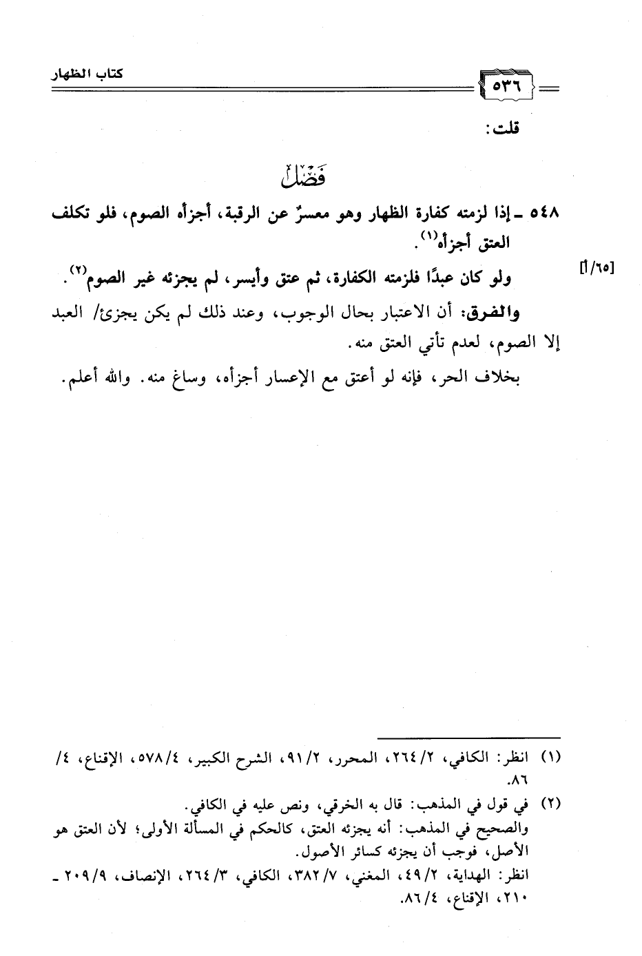 (١) انظر: الكافي، ٢/ ٢٦٤، المحرر، ٢/ ٩١، الشرح الكبير، ٤/ ٥٧٨، الإقناع، ٤/ ٨٦.