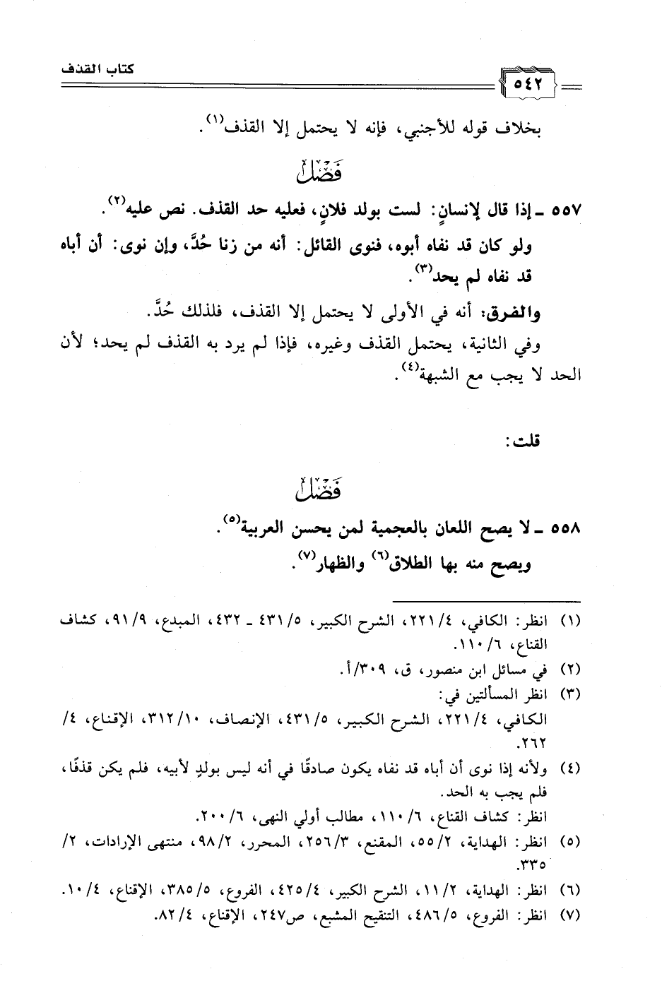 (٧) انظر: الفروع، ٥/ ٤٨٦، التنقيح المشبع، ص ٢٤٧، الإقناع، ٤/ ٨٢.