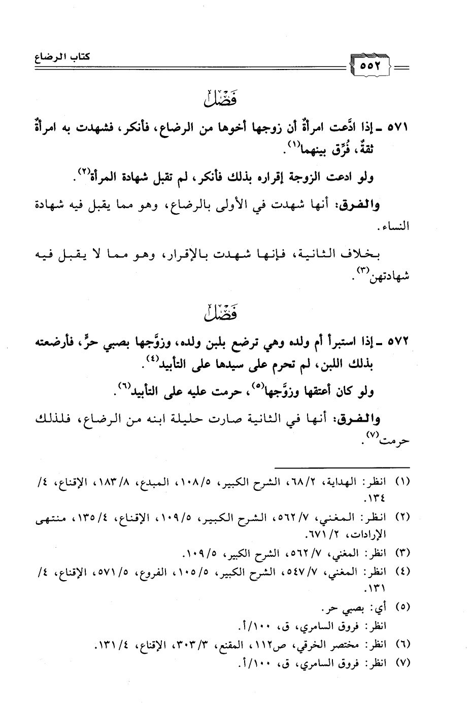 (٤) انظر: المغني، ٧/ ٥٤٧، الشرح الكبير، ٥/ ١٠٥، الفروع، ٥/ ٥٧١، الإقناع، ٤/ ١٣١.