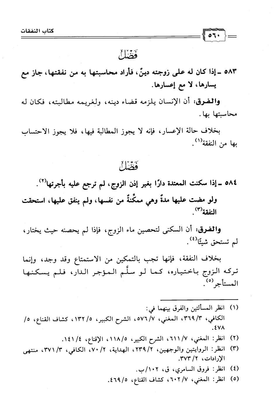 (٥) انظر: المغني، ٧/ ٦٠٢، كشاف القناع، ٥/ ٤٦٩.