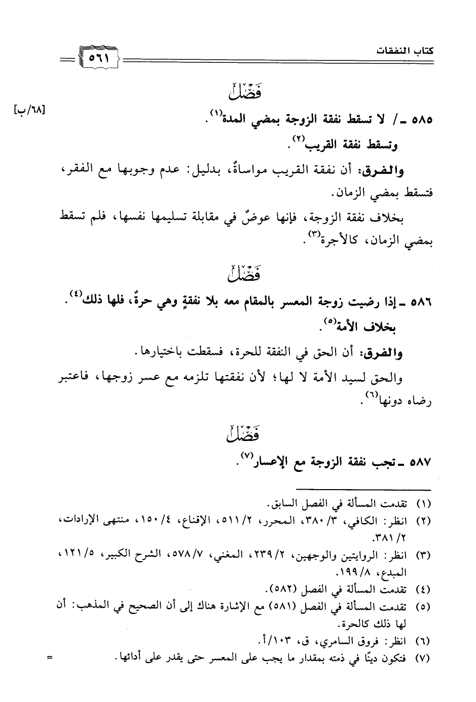 ٥٨٧ - تجب نفقة الزوجة مع الإعسار (٧).