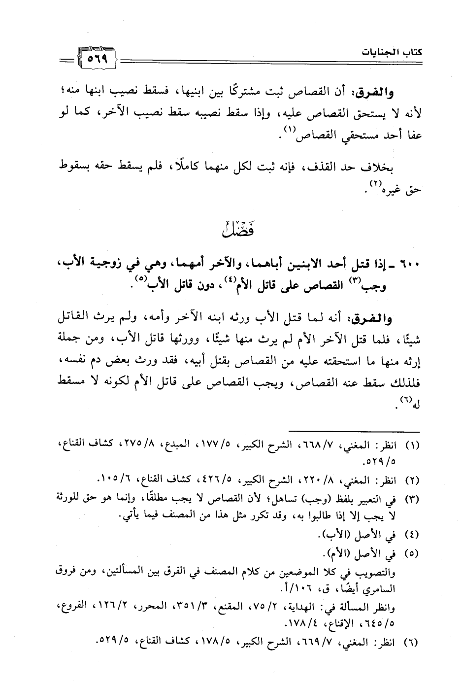 (٦) انظر: المغني، ٧/ ٦٦٩، الشرح الكبير، ٥/ ١٧٨، كشاف القناع، ٥/ ٥٢٩.