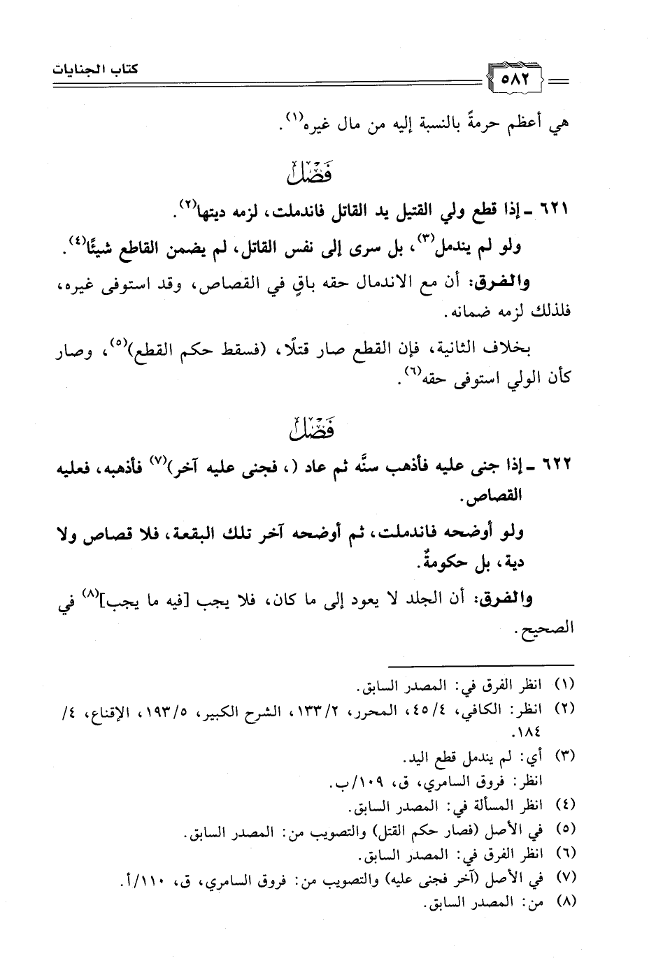 (٧) في الأصل (آخر فجنى عليه) والتصويب من: فروق السامري، ق، ١١٠/ أ.