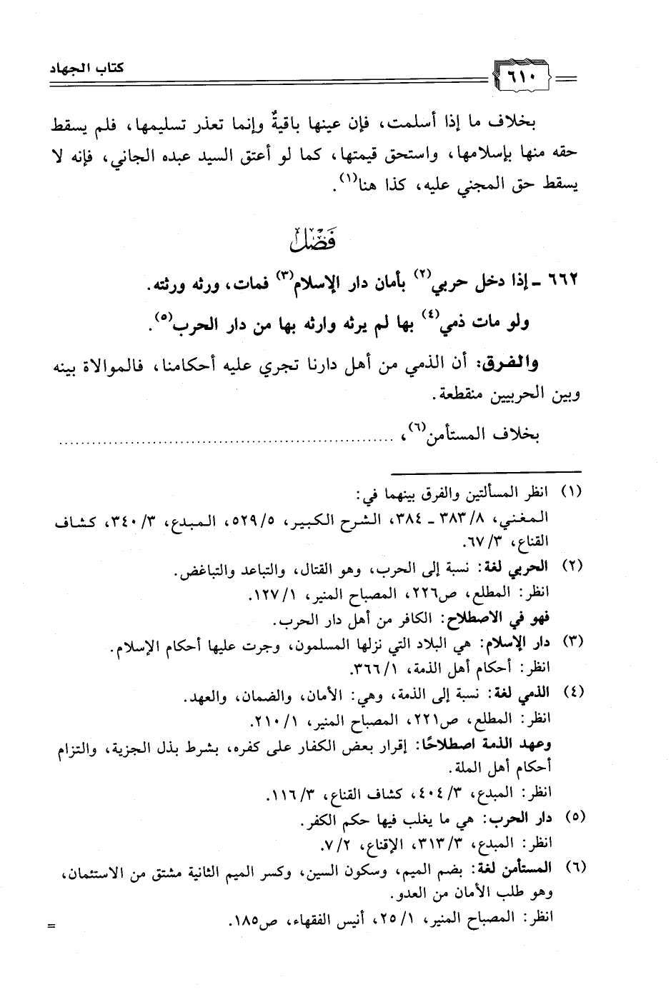 (٦) المستأمن لغة: بضم الميم، وسكون السِّين، وكسر الميم الثَّانية مشتق من الاستئمان، وهو طلب الأمان من العدو.