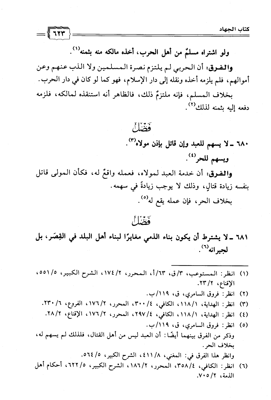 (٦) انظر: الكافي، ٤/ ٣٥٨، المحرر، ٢/ ١٨٦، الشَّرح الكبير، ٥/ ٦٢٢، أحكام أهل الذمة، ٢/ ٧٠٥.