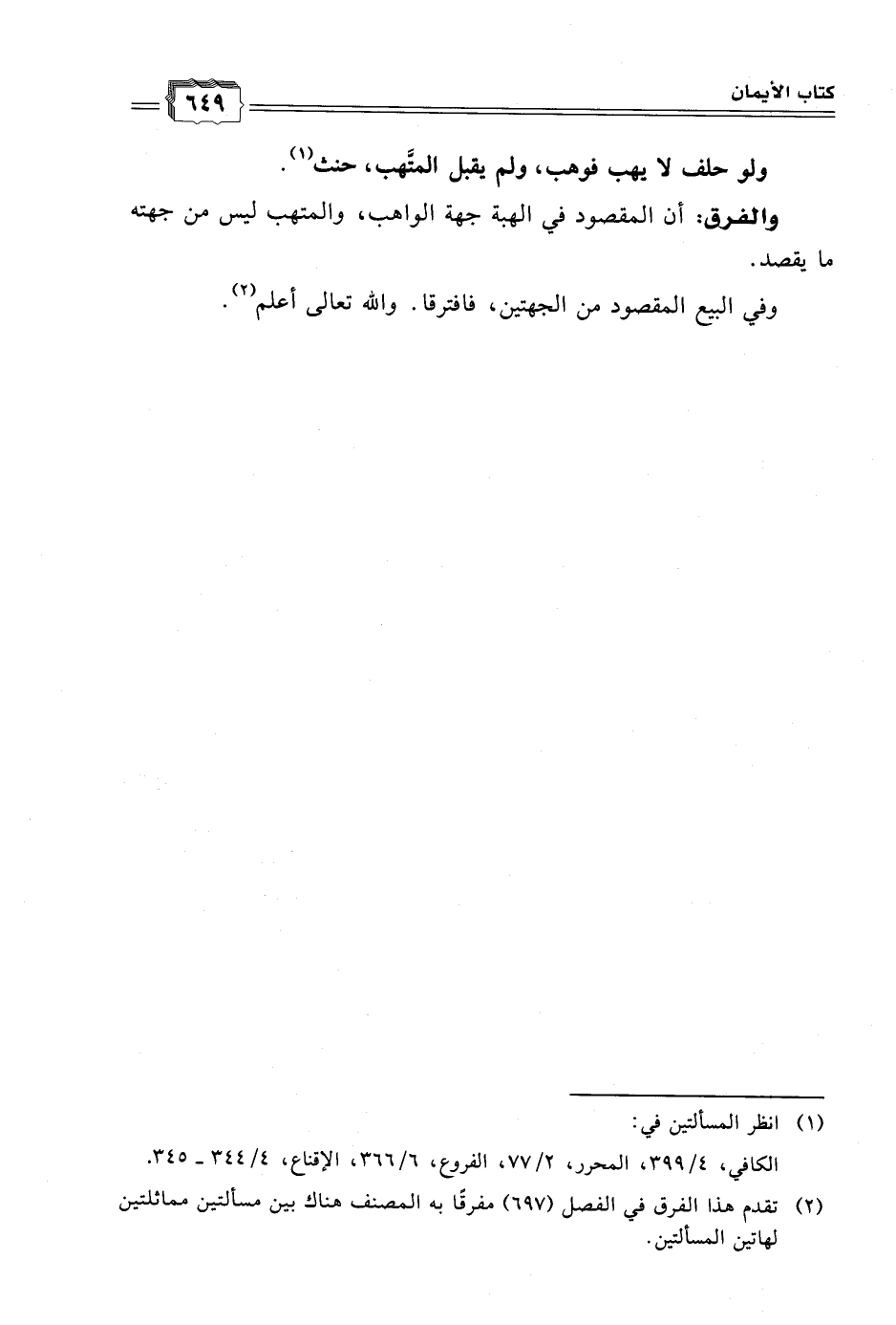 (٢) تقدم هذا الفرق في الفصل (٦٩٧) مفرقًا به المصنف هناك بين مسألتين مماثلتين لهاتين المسألتين.
