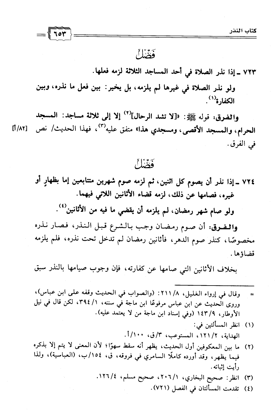 ٧٢٣ - إذا نذر الصلاة في أحد المساجد الثلاثة لزمه فعلها.