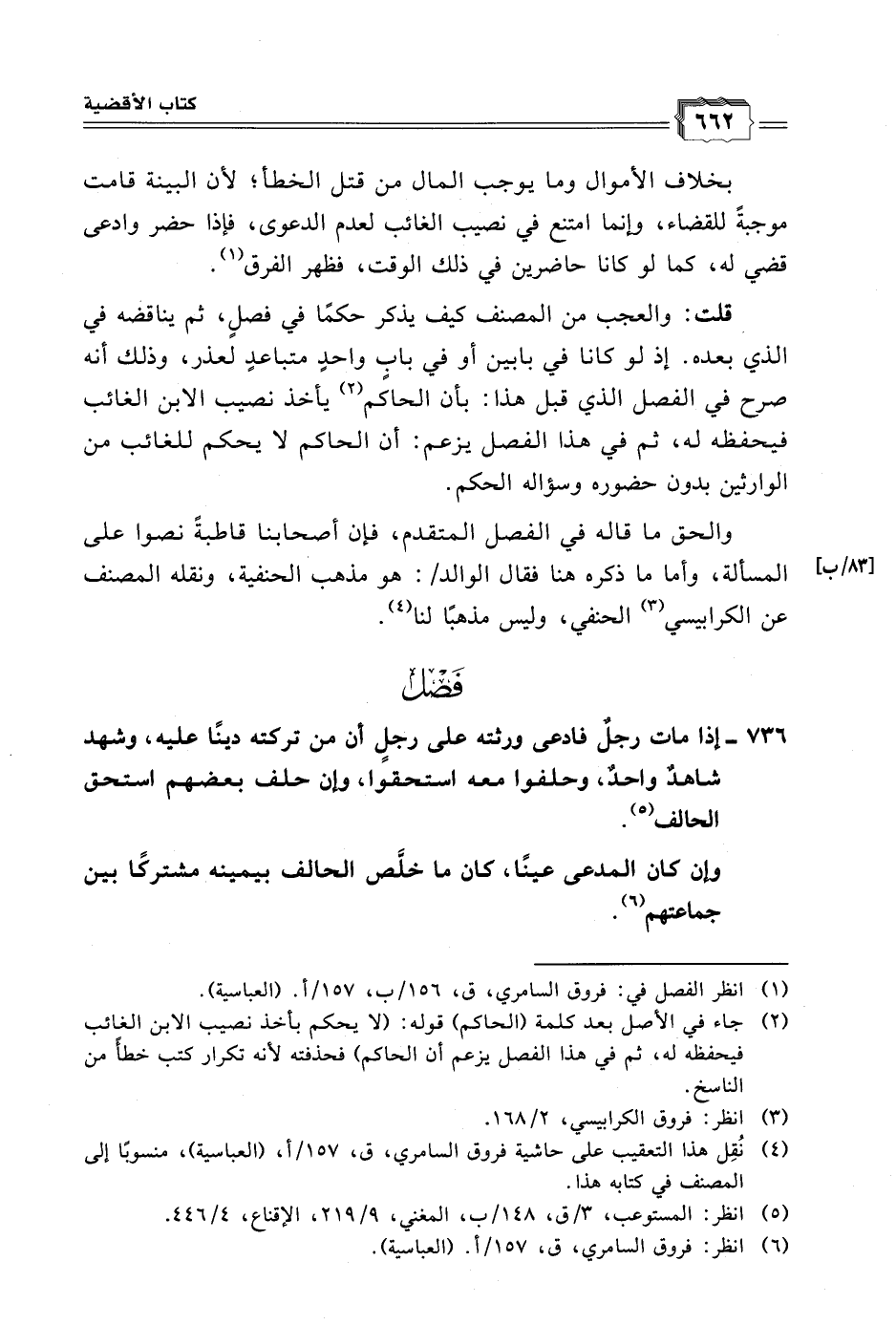 (٢) جاء في الأصل بعد كلمة (الحاكم) قوله: (لا يحكم بأخذ نصيب الابن الغائب فيحفظه له، ثم في هذا الفصل يزعم أن الحاكم) فحذفته لأنه تكرار كتب خطأً من الناسخ.