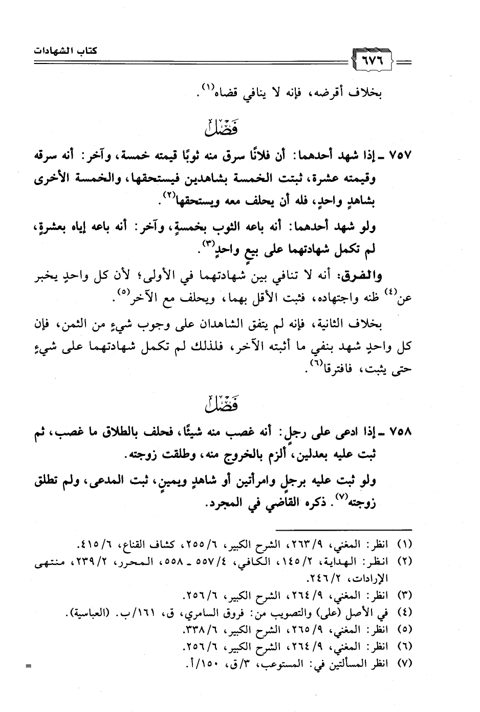 ٧٥٧ - إذا شهد أحدهما: أن فلانًا سرق منه ثوبًا قيمته خمسة، وآخر: أنه سرقه وقيمته عشرة، ثبتت الخمسة بشاهدين فيستحقها، والخمسة الأخرى بشاهدٍ واحدٍ، فله أن يحلف معه ويستحقها (٢).