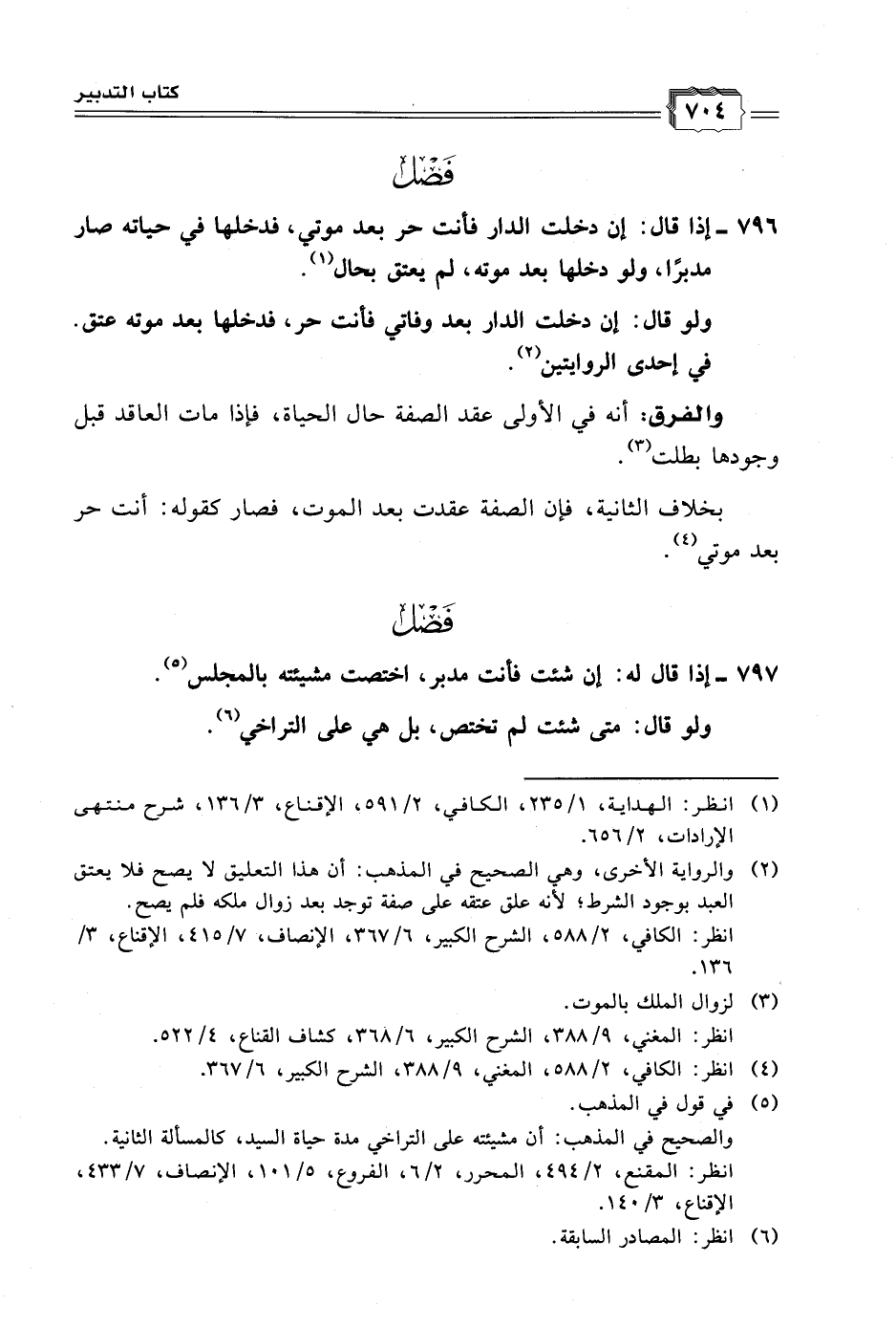 (٤) انظر: الكافي، ٢/ ٥٨٨، المغني، ٩/ ٣٨٨، الشرح الكبير، ٦/ ٣٦٧.