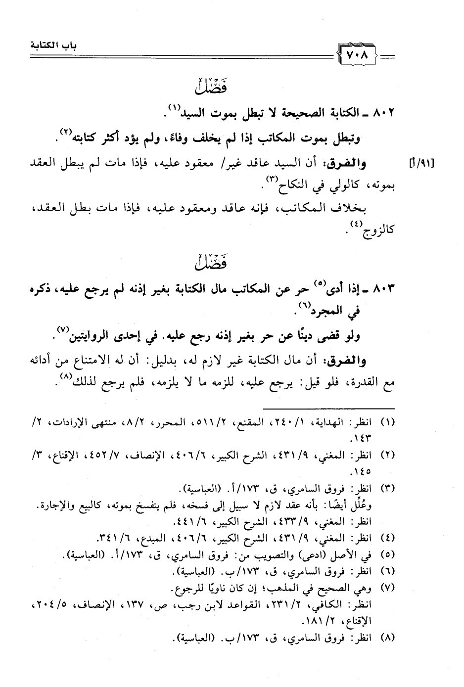 انظر: الكافي، ٢/ ٢٣١، القواعد لابن رجب، ص، ١٣٧، الإنصاف، ٥/ ٢٠٤، الإقناع، ٢/ ١٨١.