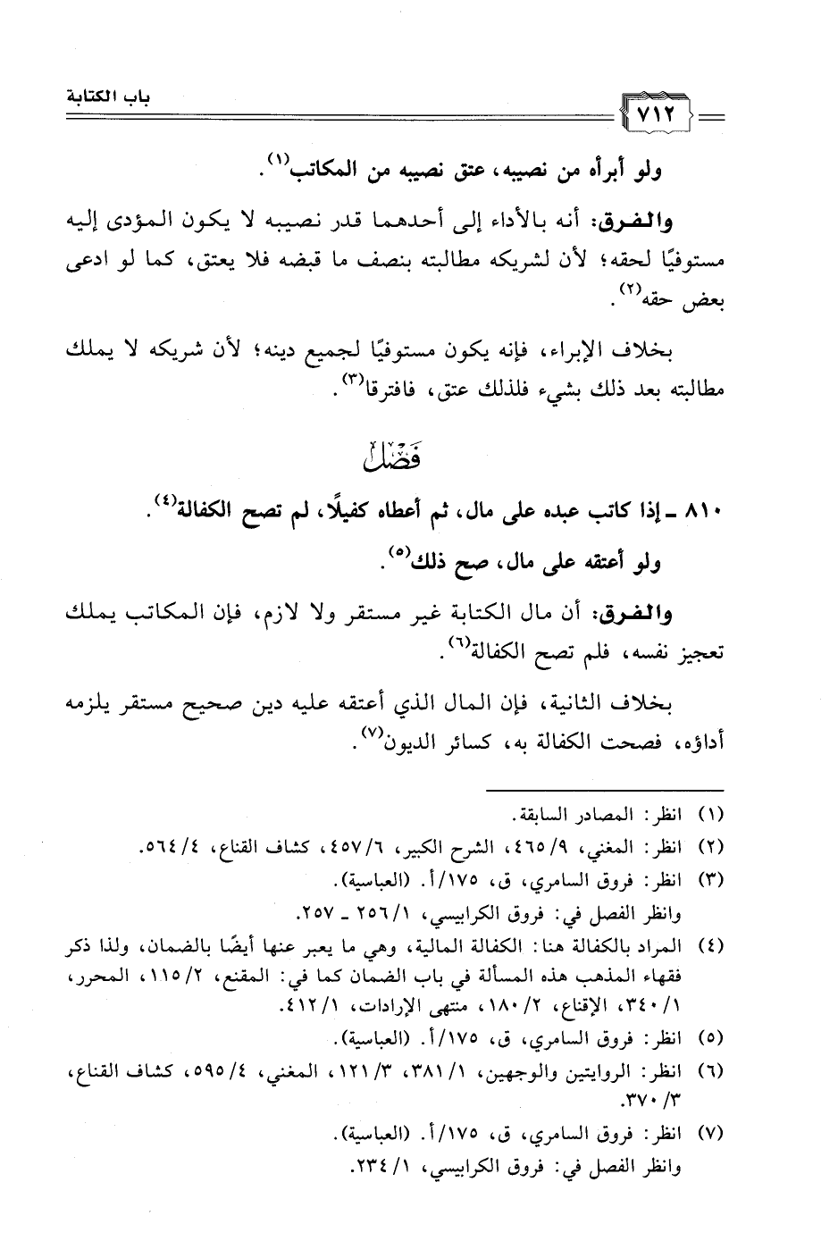 (٧) انظر: فروق السامري، ق، ١٧٥/ أ. (العباسية).