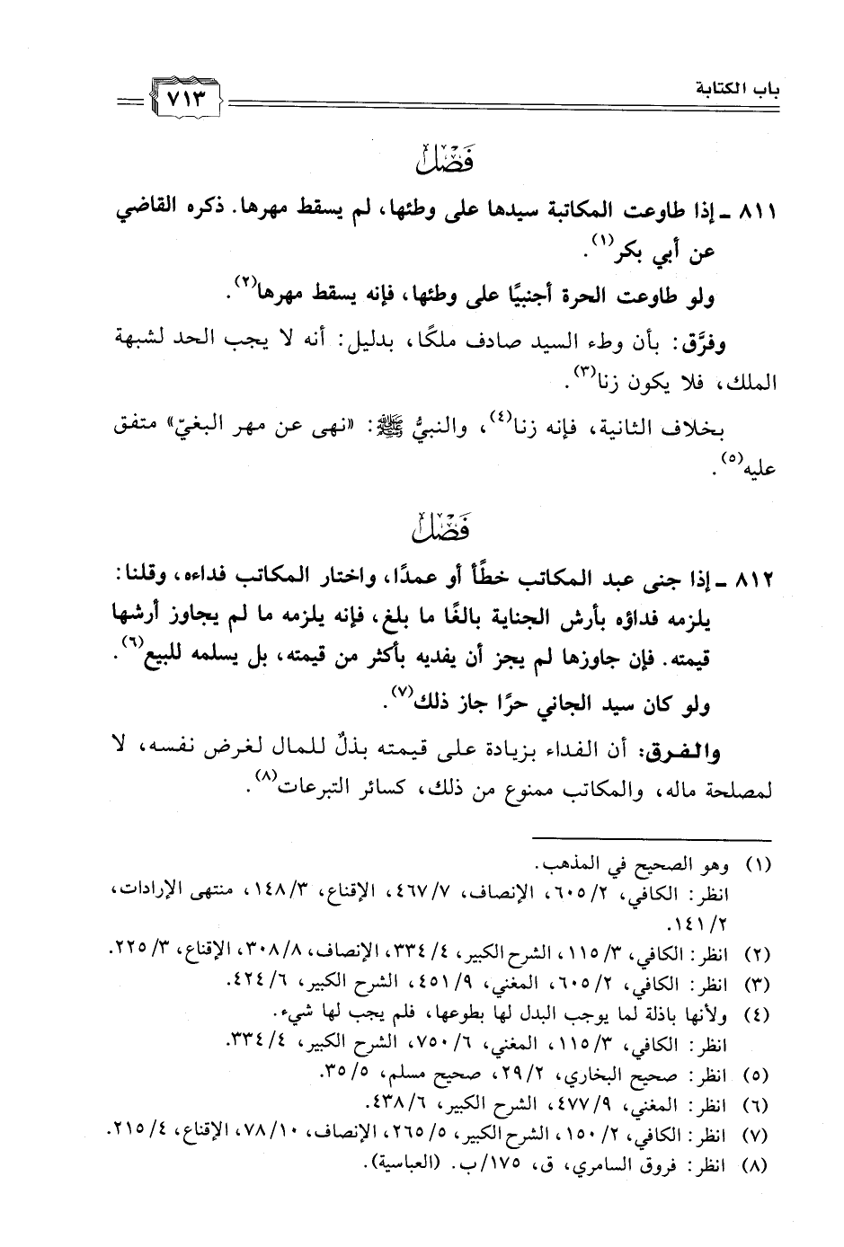 (٧) انظر: الكافي، ٢/ ١٥٠، الشرح الكبير، ٥/ ٢٦٥، الإنصاف، ١٠/ ٧٨، الإقناع، ٤/ ٢١٥.
