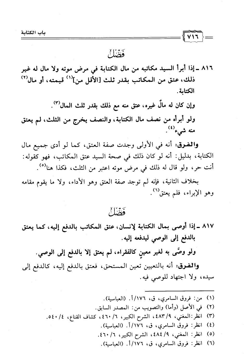 (٣) انظر: المغني، ٩/ ٤٨٣، الشرح الكبير، ٦/ ٤٦٠، كشاف القناع، ٤/ ٥٤٠.