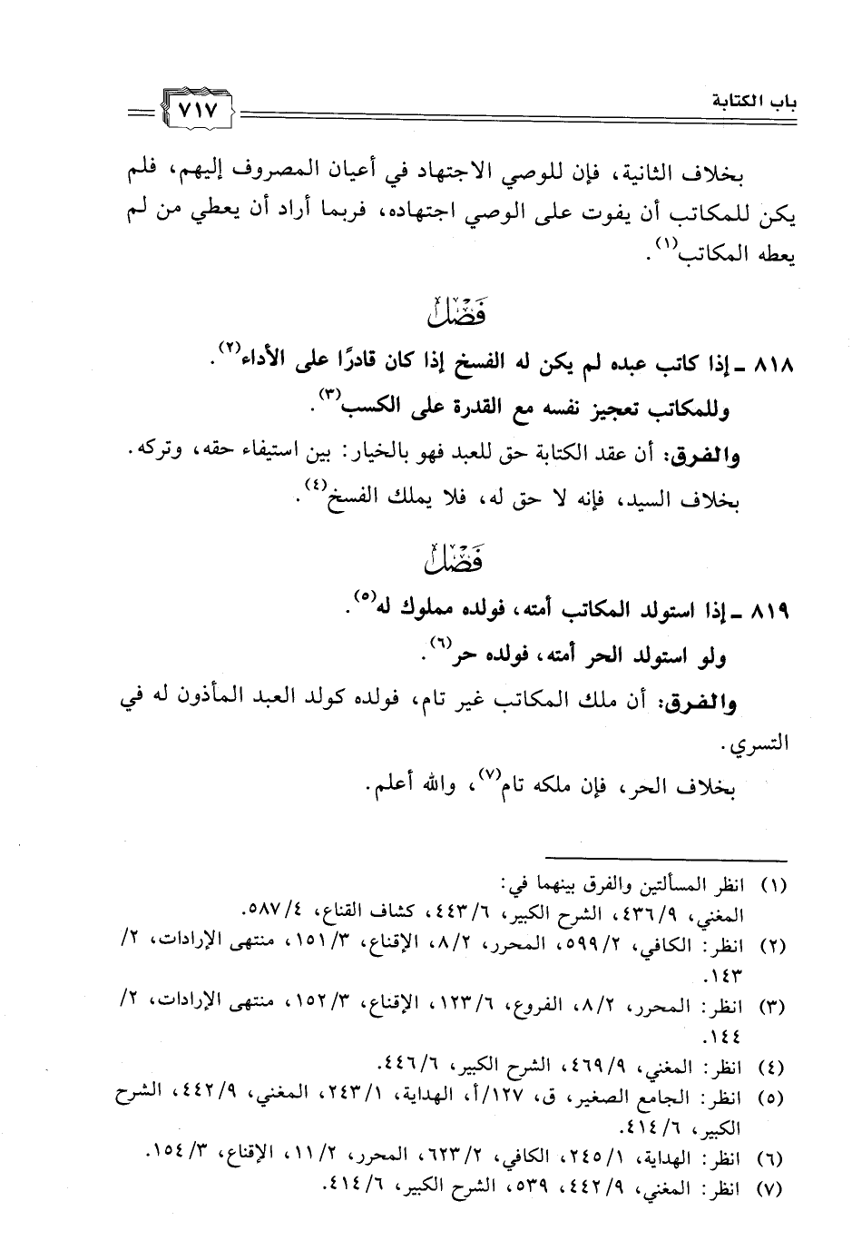 ٨١٨ - إذا كاتب عبده لم يكن له الفسخ إذا كان قادرًا على الأداء (٢).