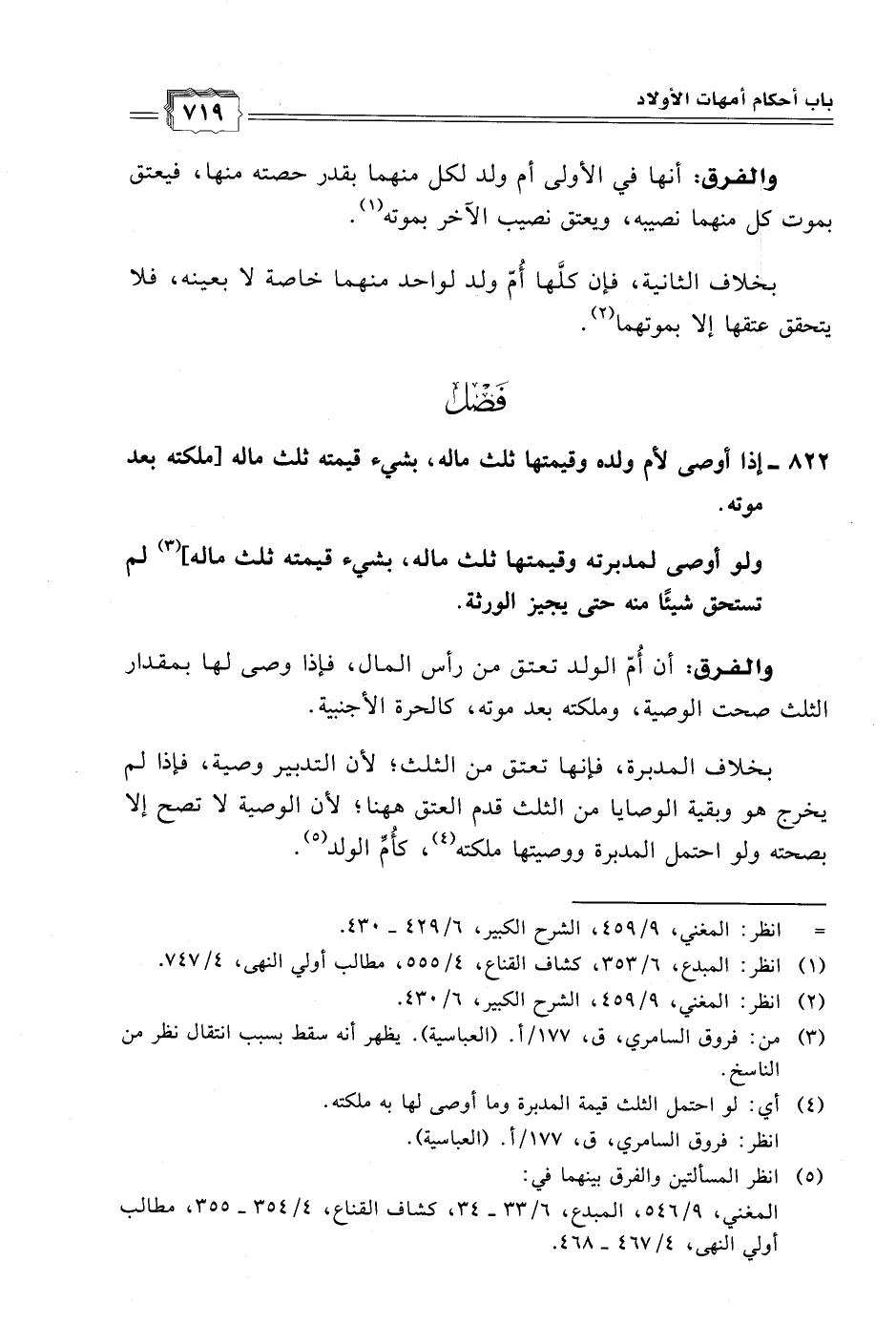 (٥) انظر المسألتين والفرق بينهما في: المغني، ٩/ ٥٤٦، المبدع، ٦/ ٣٣ - ٣٤، كشاف القناع، ٤/ ٣٥٤ - ٣٥٥، مطالب أولي النهي، ٤/ ٤٦٧ - ٤٦٨.