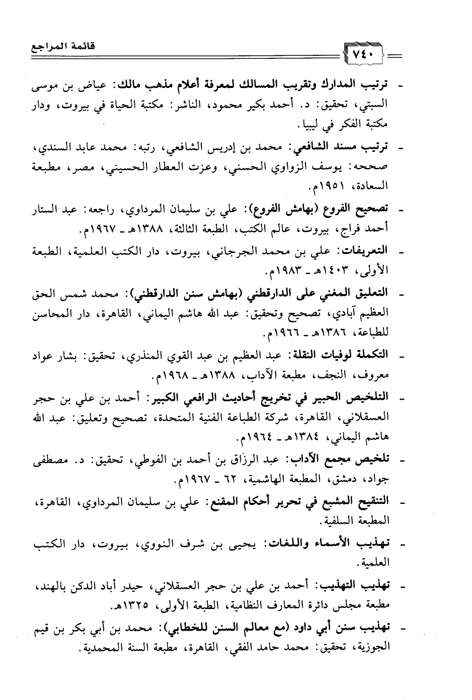 - التنقيح المشبع في تحرير أحكام المقنع: علي بن سليمان المرداوي، القاهرة، المطبعة السلفية.