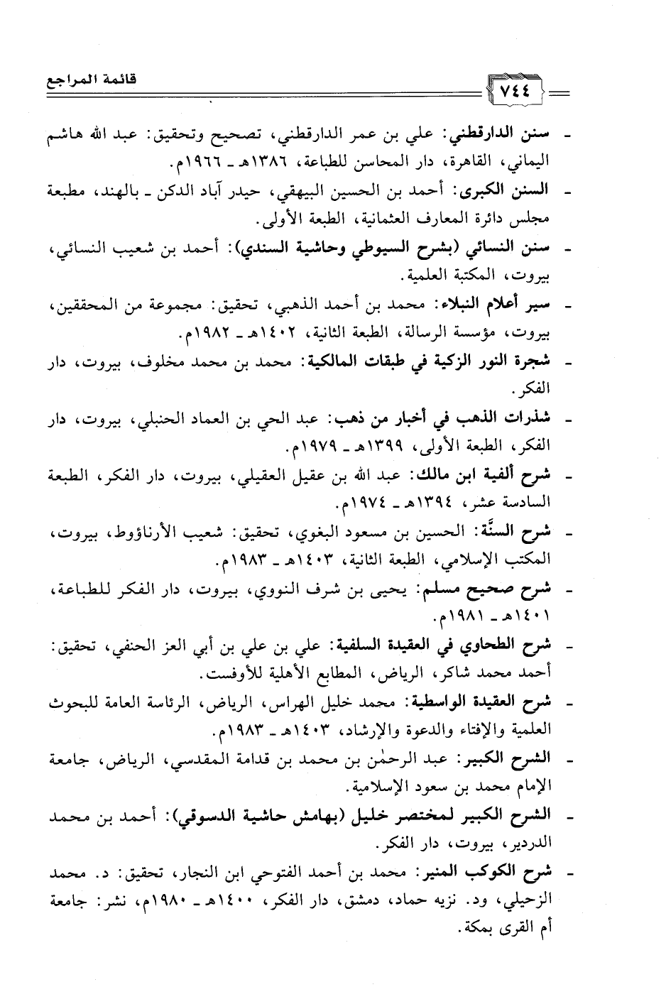- شرح الطحاوي في العقيدة السلفية: علي بن عليّ بن أبي العز الحنفي، تحقيق: أَحْمد محمَّد شاكر، الرياض، المطابع الأهلية للأوفست.
