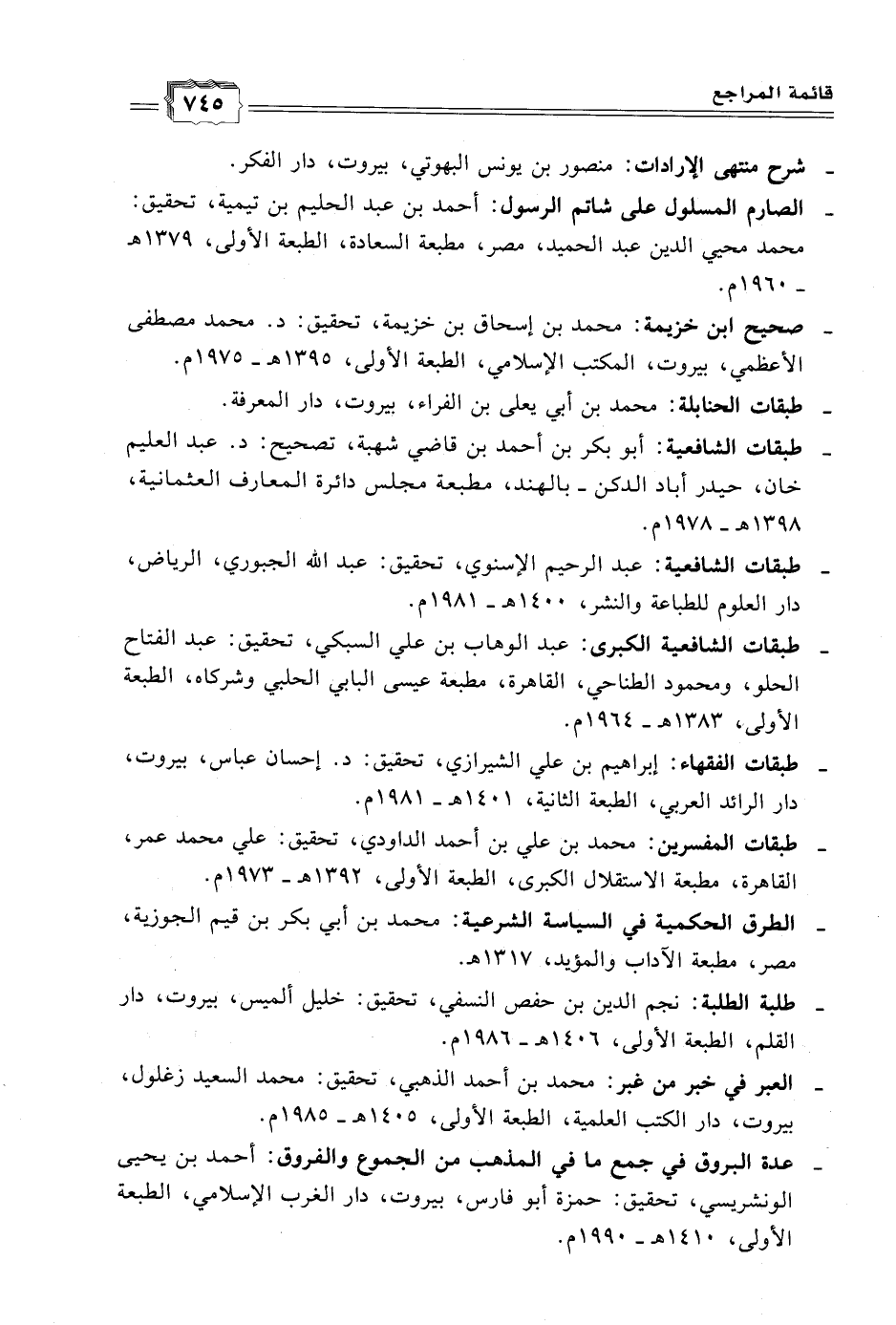 - طبقات الشافعية: عبد الرَّحِيم الإسنوي، تحقيق: عبد الله الجبوري، الرياض، دار العلوم للطباعة والنشر، ١٤٠٠ هـ - ١٩٨١ م.