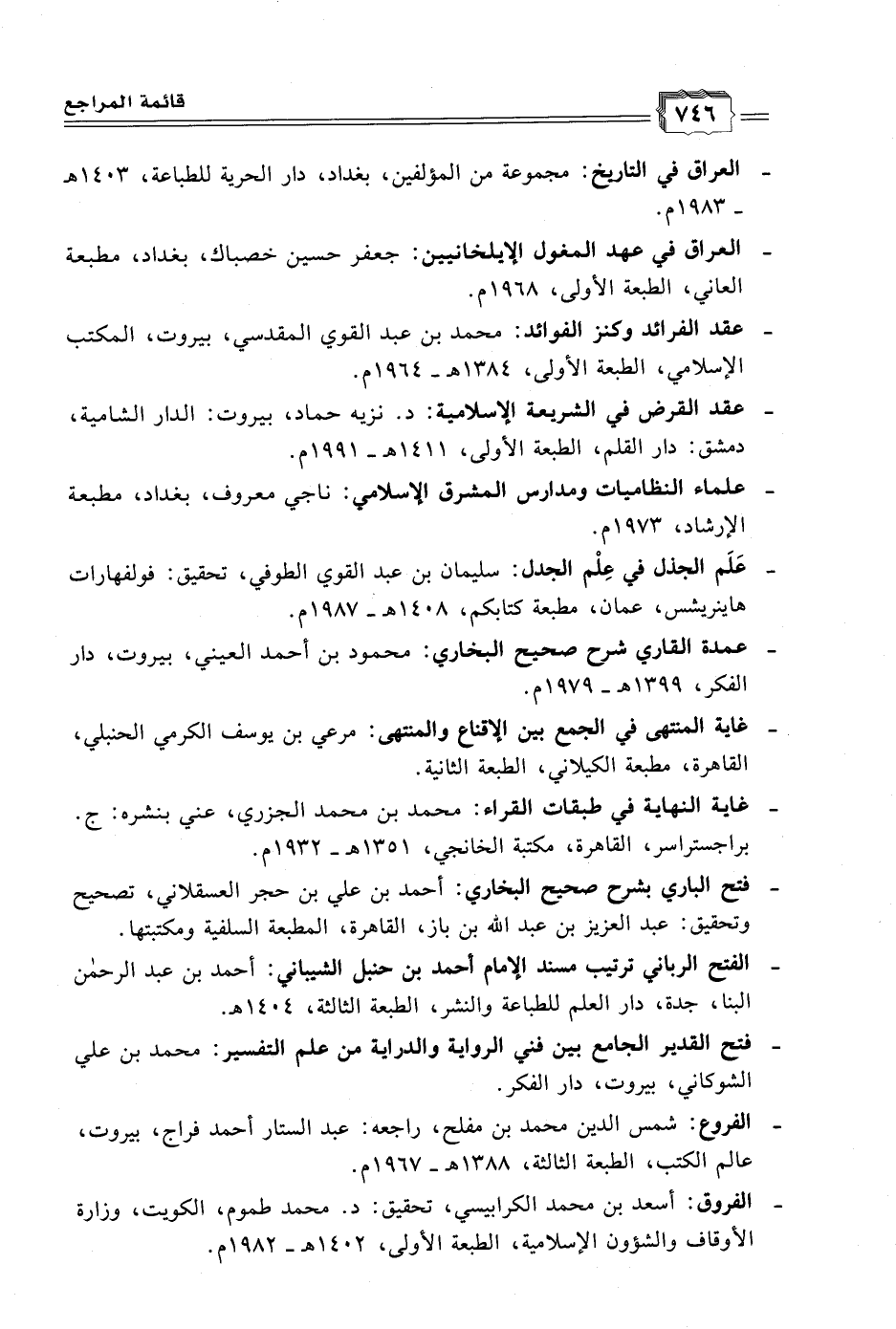 - الفروع: شمس الدين محمَّد بن مفلح، راجعه: عبد الستار أَحْمد فراج، بيروت، عالم الكتب، الطبعة الثالثة، ١٣٨٨ هـ - ١٩٦٧ م.