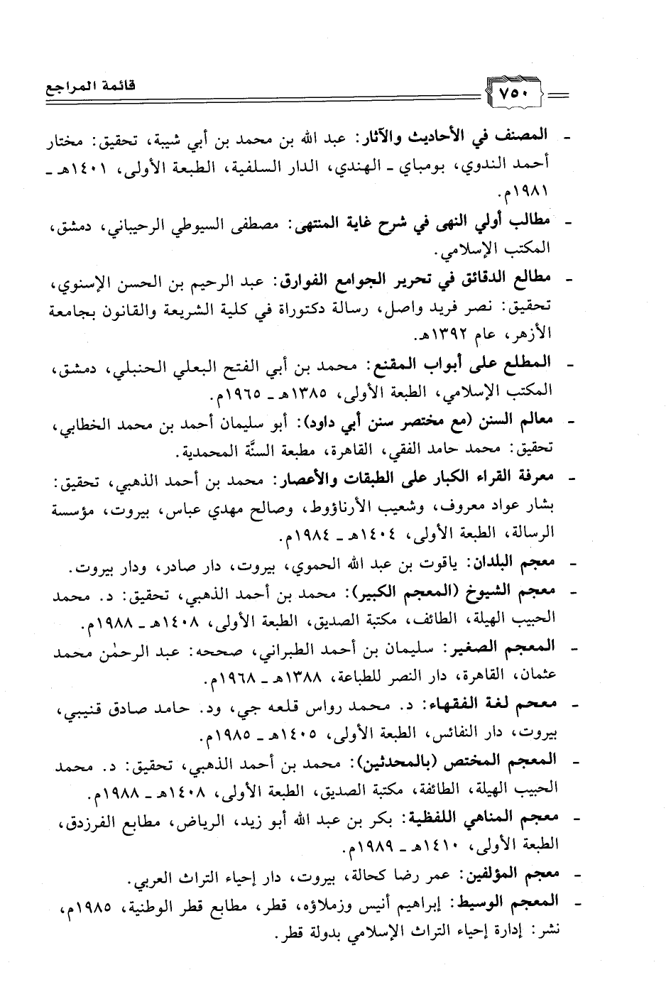 - مطالب أولي النهي في شرح نهاية المنتهى: مصطفى السيوطي الرحيباني، دمشق، المكتب الإِسلامي.