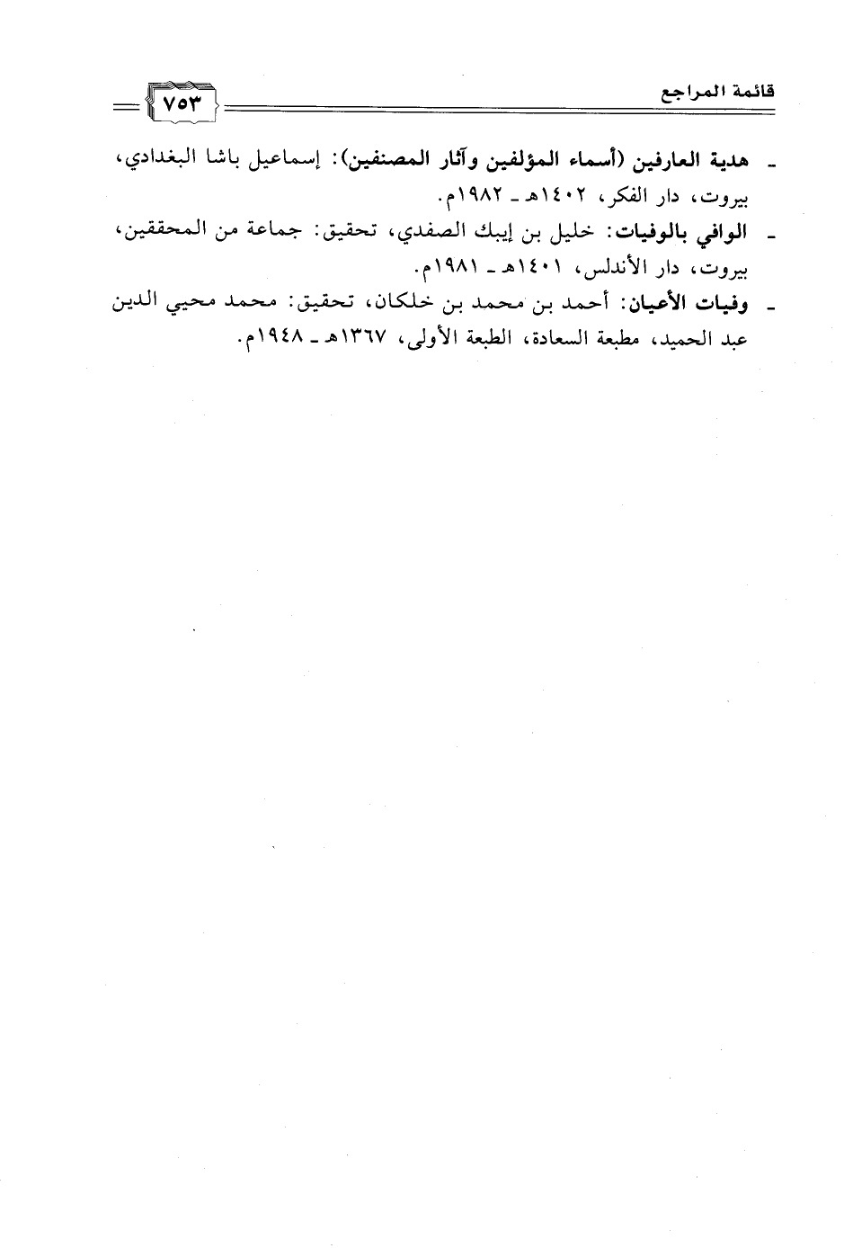 - هدية العارفين (أسماء المؤلفين وآثار المصنفين): إسماعيل باشا البغدادي، بيروت، دار الفكر، ١٤٠٢ هـ - ١٩٨٢ م.