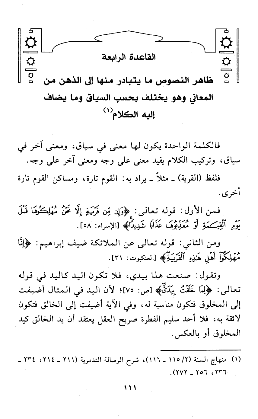 ظاهر النصوص ما يتبادر منها إلى الذهن من المعاني، وهو يختلف بحسب السياق وما يضاف إليه الكلام (1)