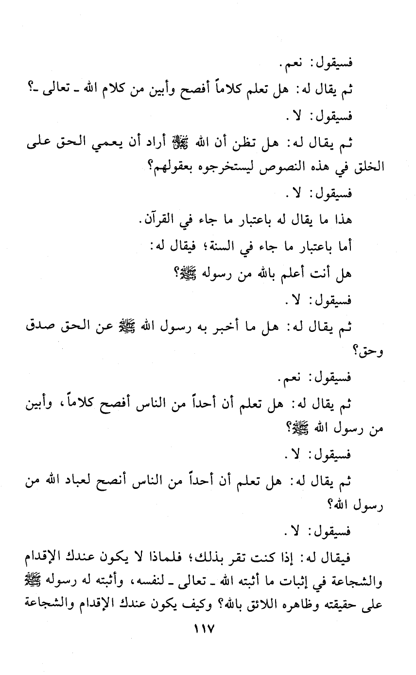 ثم يقال له: هل تعلم أن أحدًا من الناس أفصح كلامًا، وأبين من رسول الله - صلى الله عليه وسلم -؟