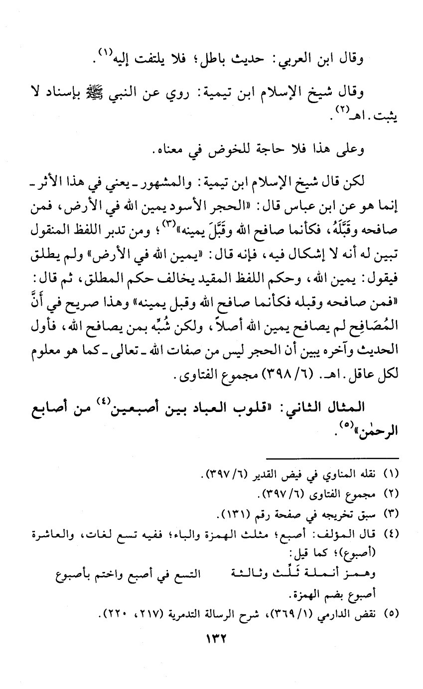 المثال الثاني: " قلوب العباد بين أصبعين (¬4) من أصابع الرحمن " (¬5).