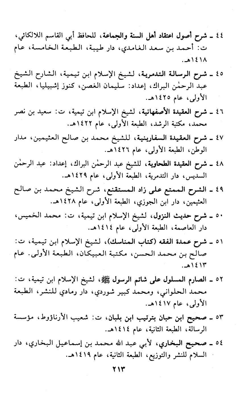 50 - شرح حديث النزول، لشيخ الإسلام ابن تيمية، ت. محمد الخميس، دار العاصمة، الطبعة الأولى، عام 1414 هـ.
