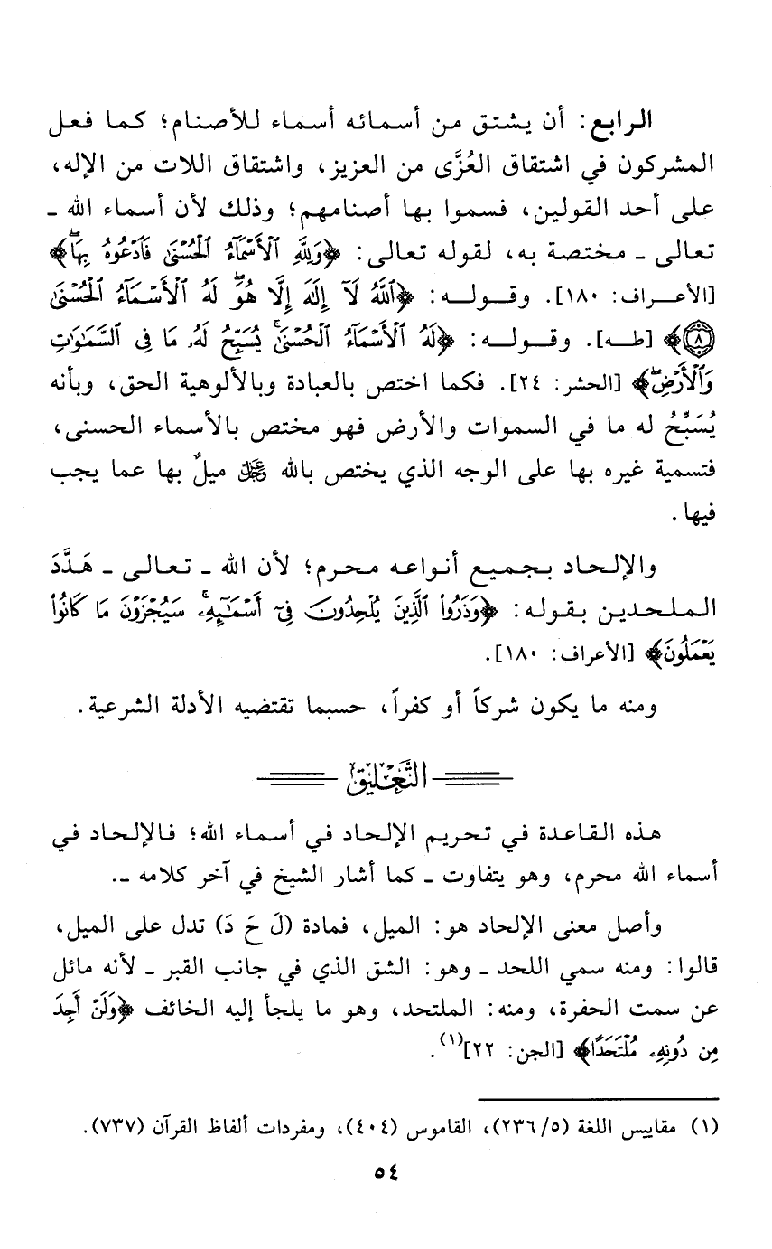 هذه القاعدة في تحريم الإلحاد في أسماء الله؛ فالإلحاد في أسماء الله محرم، وهو يتفاوت - كما أشار الشيخ في آخر كلامه -.